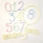 Acompañá el crecimiento de tu bebé de una forma original, cálida y llena de estilo con nuestro kit de números en tricotín. Hechos a mano con alambre forrado en suave hilo,en tonos pasteles, los números del 0 al 9 se combinan con un globo decorativo para armar mes a mes la edad de tu bebé sobre una superficie plana y crear fotos inolvidables de su primer año de vida.